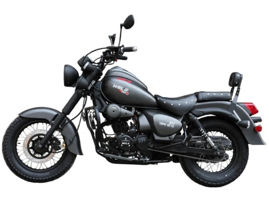 Комплектация Wels Трофейный оснащена механической коробкой передач, 0.3 литровым двигателем (16 л.с.) с расходом топлива 3.5 литров на 100 км. Стоимость данного мотоцикла составляет 99 610 руб.